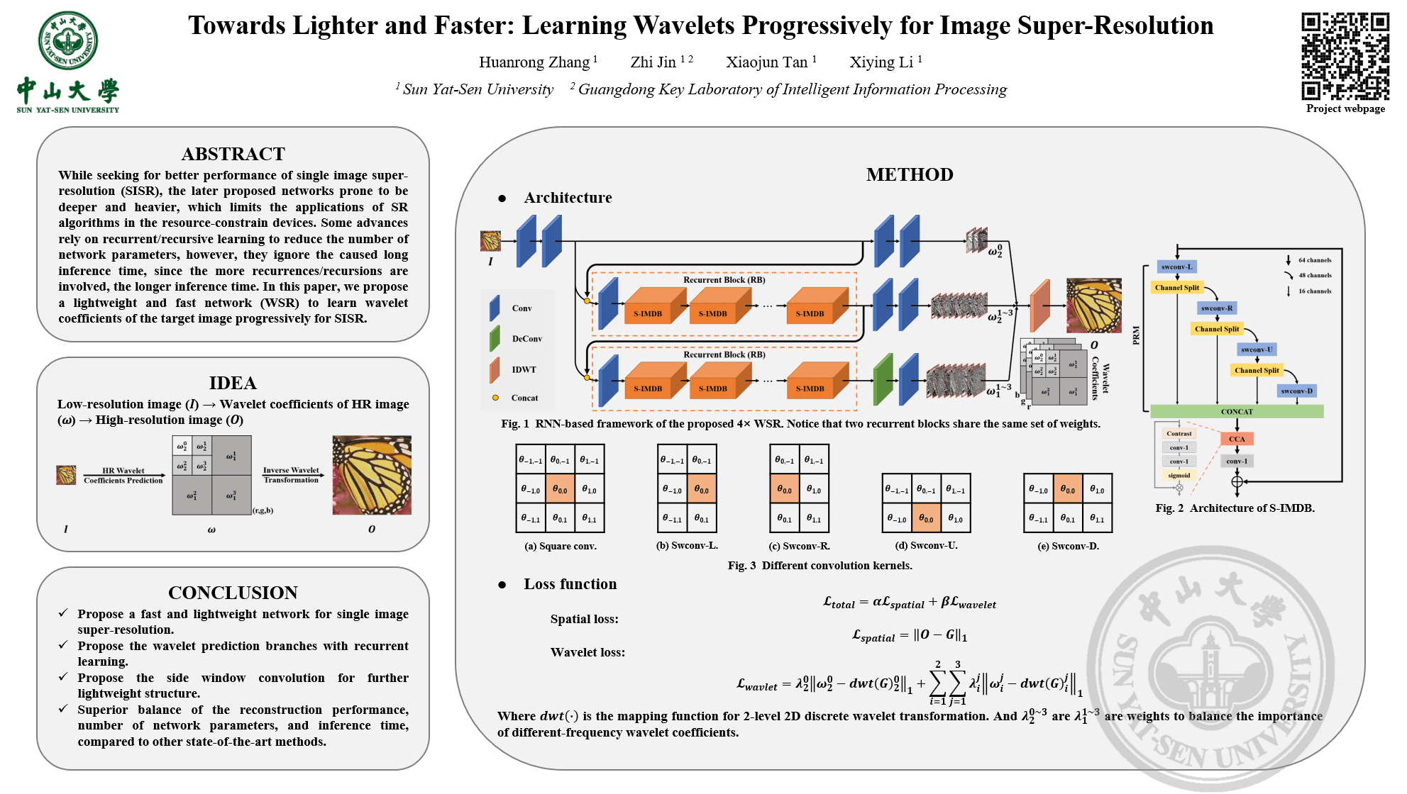 Huanrong Zhang, Zhi Jin*, Xiaojun Tan, Xiying Li Towards Lighter and Faster: Learning Wavelets Progressively for Image Super-Resolution Proceedings of the 28th ACM International Conference on Multimedia (ACM MM) 2020. [paper][code]